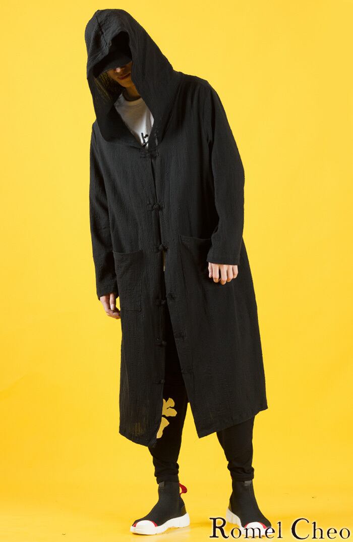 【お支払い確認後20日以内発送】 RomelCheo チャイナボタン ロングパーカー チャイナボタンジャケット コーディガン ライトアウター 羽織り 個性的 エスニック アジアン 和風 和装 民族風 メンズ レディース ユニセックス モード系 ストリート 原宿系 青文字系 ファッション ロメルチェオ