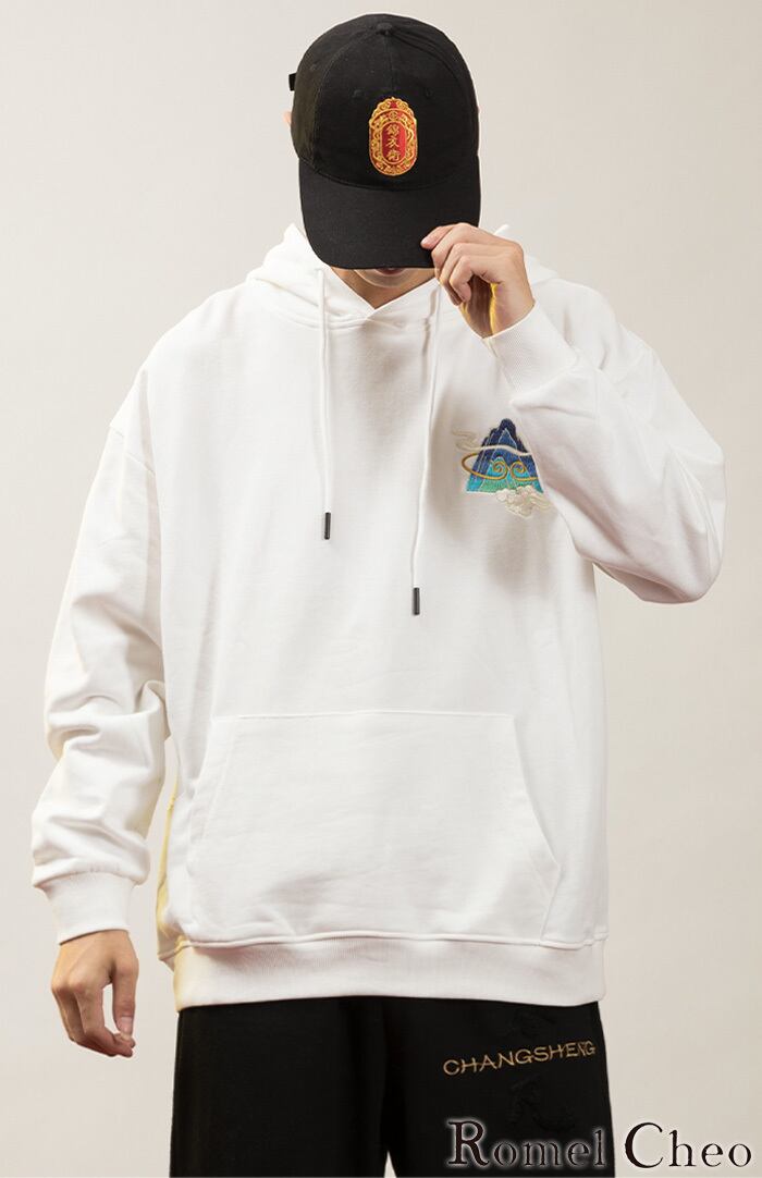 【お支払い確認後20日以内発送】RomelCheo 孫悟空 刺繍パーカー プルオーバーパーカー グラフィックパーカー 総柄 ゆったり アジアン エスニック 民族風 HIPHOP レディース メンズ ユニセックス モード系 ファッション 森ガール 原宿系 青文字系 カジュアル ファッション ロメルチェオ