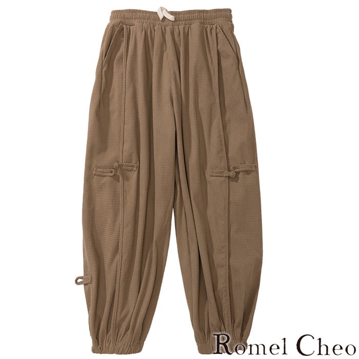 【お支払い確認後20日以内発送】RomelCheo チャイナボタン ジョガーパンツ ランタンパンツ サルエルパンツ カンフーパンツ ロングパンツ タイパンツ アラジンパンツ カジュアルパンツ リブパンツ ウエストゴム メンズ モード系 ストリート 原宿系 青文字系 サロン系 ファッション ロメルチェオ