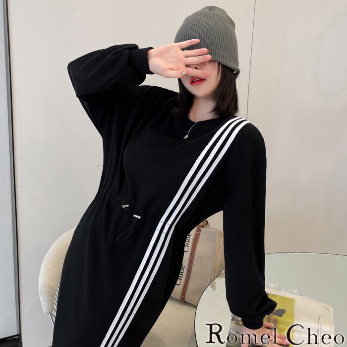 【お支払い確認後20日以内発送】RomelCheo アシメライン ロングトレーナー ロングワンピ プルオーバーワンピ アシメワンピ ラインワンピ ミディ丈 Iライン リラックス 大人カジュアル レディース モード系 ファッション 森ガール 原宿系 青文字系 カジュアル ファッション ロメルチェオ