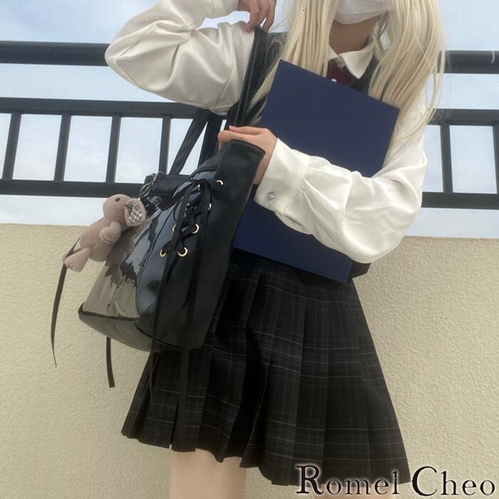 【お支払い確認後20日以内発送】 RomelCheo 大容量レースアップ痛バッグ シースルーバッグ クリアトートバッグ レースアップバッグ ショルダーバッグ トートバッグ ロリータ 病みかわ レディース ストリート モード系 森ガール 個性的 原宿系 青文字系 カジュアル ファッション ロメルチェオ