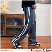 【お支払い確認後20日以内発送】RomelCheo 裏起毛コーデュロイラインパンツ サイドラインパンツ ワイドパンツ ワイドレッグパンツ トラックパンツ イージーパンツ ジョガーパンツ オーバーサイズ カジュアル メンズ 個性的 モード系 ストリート 原宿系 青文字系 ファッション ロメルチェオ