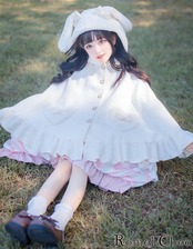【お支払い確認後20日以内発送】 RomelCheo うさ耳フード付裏起毛ケープ ケープコート マントコート ポンチョ 羽織り うさ耳フード フード付き ラビットフード もこもこ ロリータ スウィートロリータ 甘ロリ レディース モード系 ストリート 原宿系 青文字系 ファッション ロメルチェオ