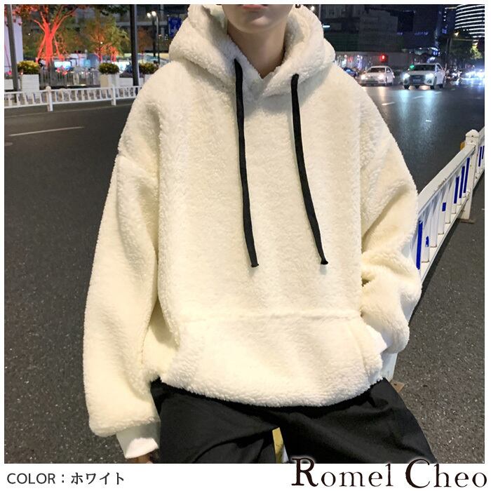 【お支払い確認後20日以内発送】RomelCheo ストリートメッセンジャーボアパーカー プルオーバーパーカー オーバーサイズパーカー もこもこパーカー 変形パーカー デザインパーカー ゆったり 長袖 メンズ 個性的 モード系 ストリート 原宿系 青文字系 カジュアル ファッション ロメルチェオ