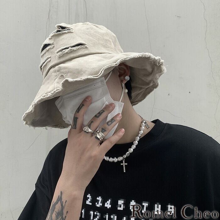 【お支払い確認後20日以内発送】RomelCheo ストリート系ダメージデニムハット バケットハット ダメージハット アドベンチャーハット サファリキャップ 帽子 ハット キャップ カジュアル 個性的 メンズ レディース ユニセックス モード系 ストリート 原宿系 青文字系 ファッション ロメルチェオ