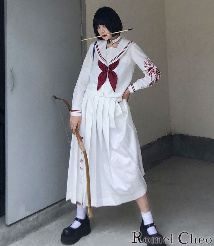 セーラー服の袖とスカートに入った刺繍が個性を際立たせる1着★