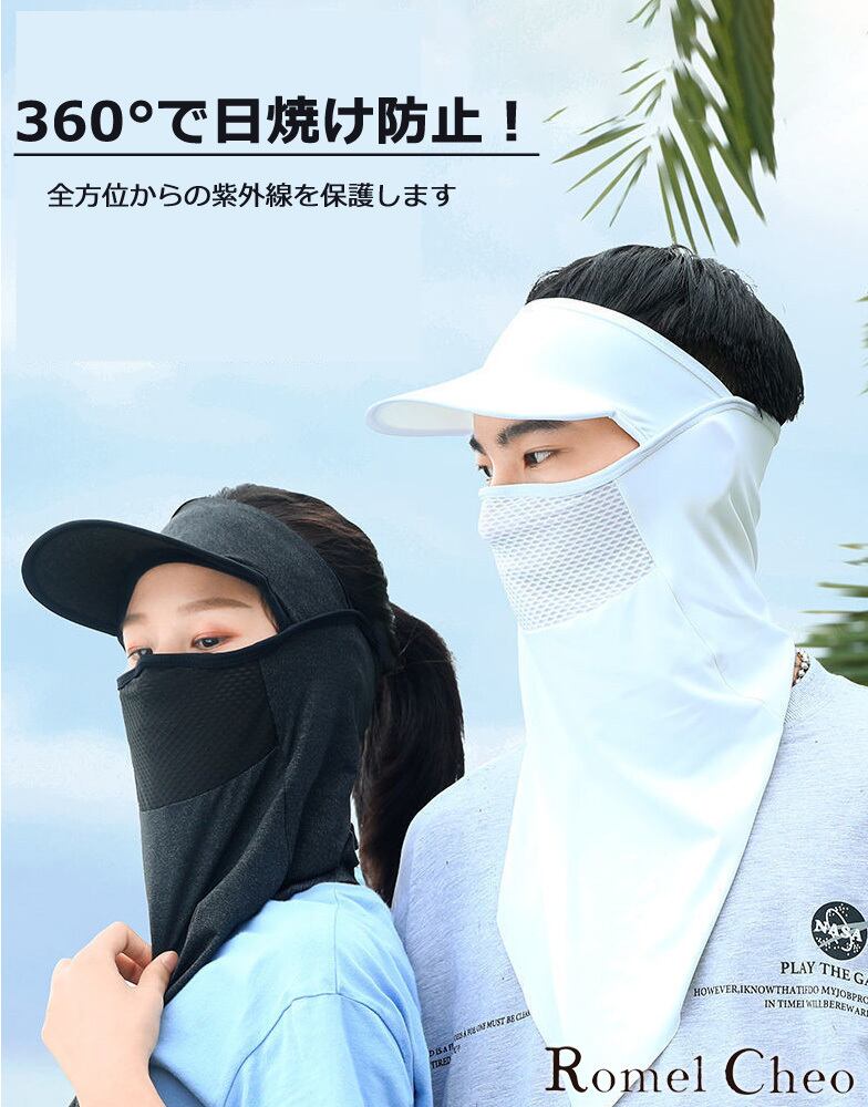 【お支払い確認後20日以内発送】 RomelCheo 日焼け対策マスク付き 帽子 涼しい ユニセックス サンバイザー メッシュ加工 ウォーキング ゴルフ 目出し帽 バラクラバ アウトドア スポーツ 小物 おしゃれ 紫外線対策 UV対策 モード系 ストリート 原宿系 青文字系 ファッション ロメルチェオ