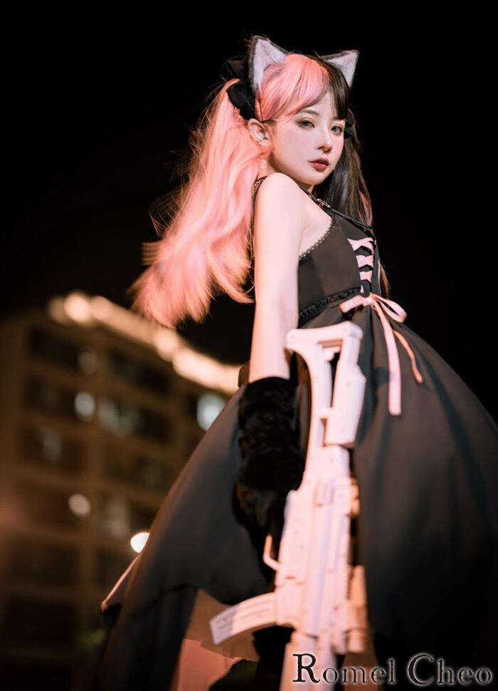ブラックとピンクの切り替えデザインが小悪魔感漂うワンピになります。