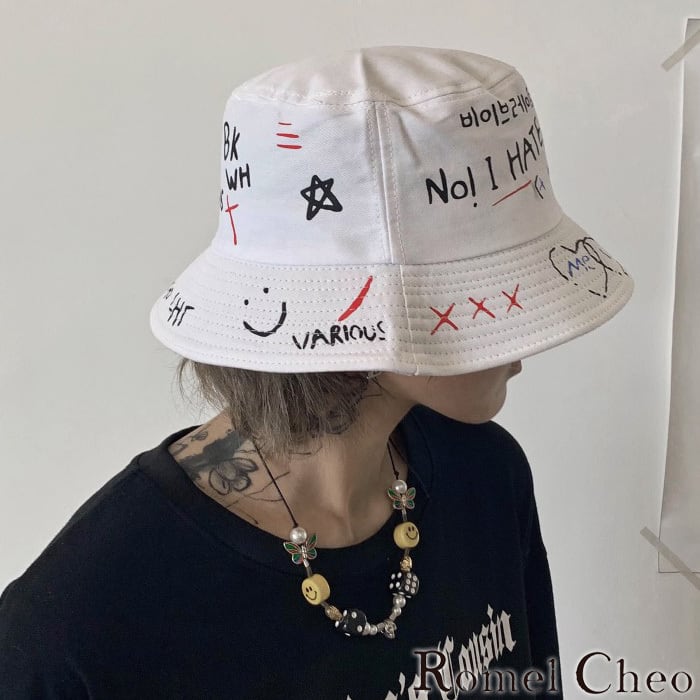 【お支払い確認後20日以内発送】 RomelCheo ストリート柄 ハット 帽子 バケットハット サファリハット ツバ広帽子 総柄ハット キャップ 日よけ アウトドア メンズ レディース ユニセックス カジュアル モード系 ストリート 原宿系 青文字系 ファッション ロメルチェオ