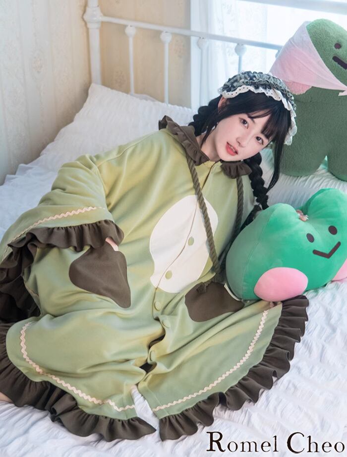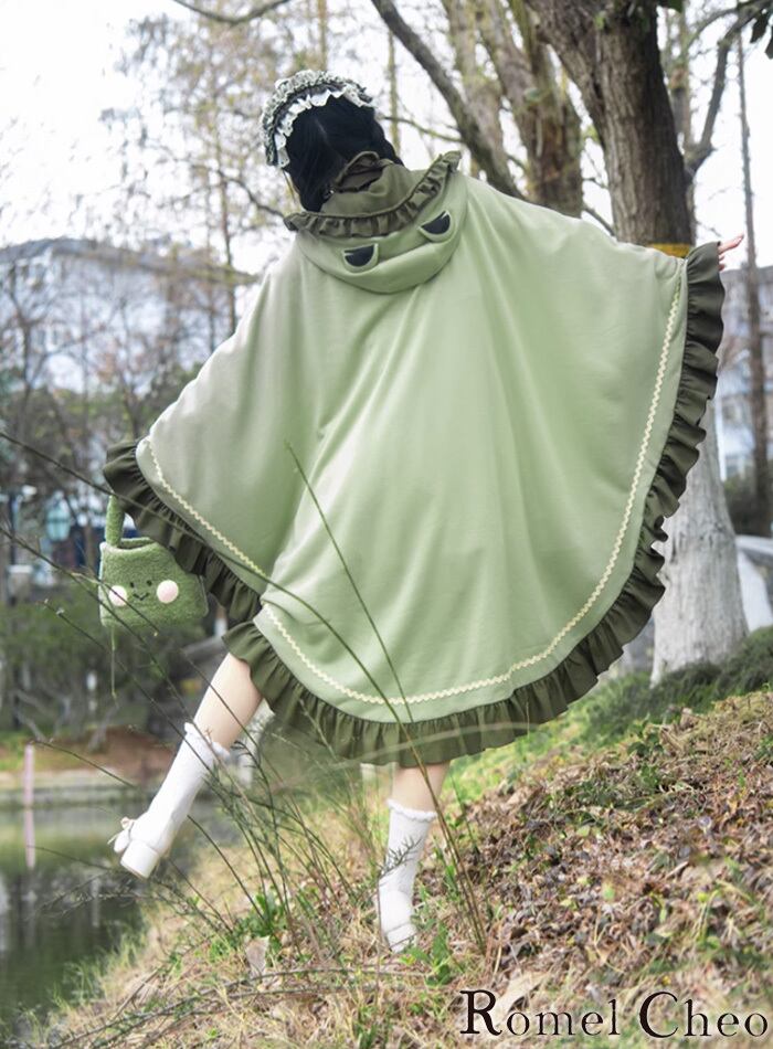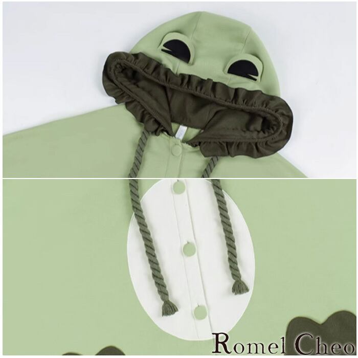 【お支払い確認後20日以内発送】RomelCheo カエルマントパーカー ボレロ カーディガン カーデ ケープ ケープコート マントコート フードケープ ポンチョ パーカーポンチョ 羽織 フード付き ロリータ 夢かわ レディース モード系 ストリート 原宿系 青文字系 ファッション 個性的 ロメルチェオ
