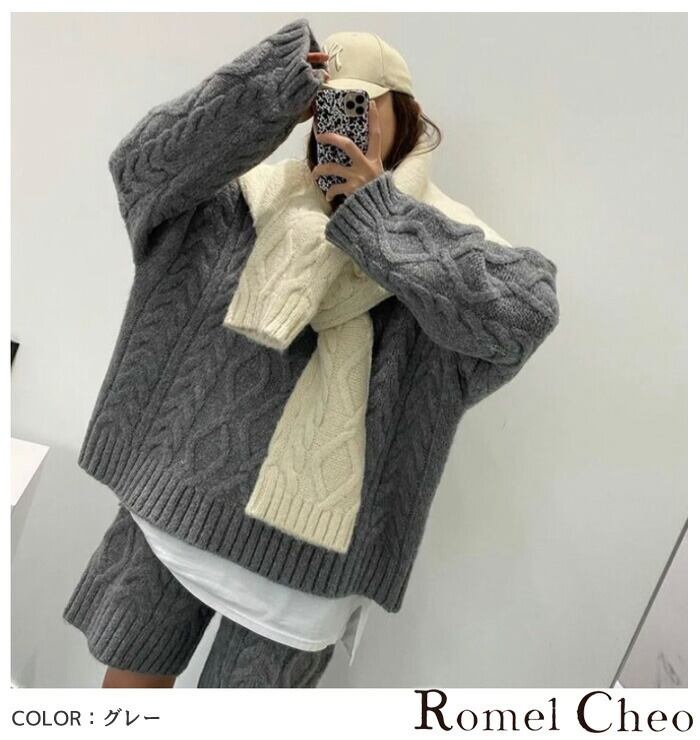 【お支払い確認後20日以内発送】RomelCheo ニット セットアップ ニット 上下セット ハイネックニット タートルネック ボリュームニット ケーブルニット ニットパンツ ショートパンツ ハーフパンツ ゆったり カジュアル レディース モード系 ストリート 原宿系 サロン系 ロメルチェオ