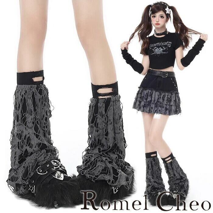 【お支払い確認後20日以内発送】 RomelCheo サブカルダメージレッグカバー レッグウォーマー レッグウェア レッグアクセ ファッション小物 ゴシック パンク ロリータ 個性的 カジュアル レディース モード系 ストリート 原宿系 青文字系 サロン系 ファッション ロメルチェオ