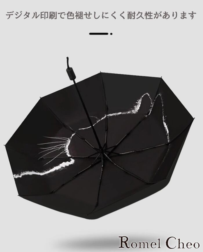 【お支払い確認後20日以内発送】 RomelCheo 押しボタン式 猫柄 折り畳み傘 雨傘 日傘 晴雨兼用 三つ折り傘 ネコデザイン丈夫 軽量 頑丈 コンパクト 日焼け予防 おしゃれ傘 メンズ レディース ユニセックス モード系 ストリート 原宿系 青文字系 ファッション ロメルチェオ