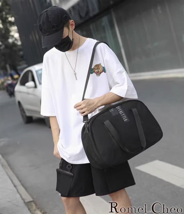 【お支払い確認後20日以内発送】 RomelCheo オシャレ ショルダーバッグ 男女兼用 ストリート系 ミニボストンバッグ 2WAYバッグ フィットネスバッグ ボディラゲッジバッグ スポーツバッグ ハンドバッグ カバン 鞄 小物 モード系 ストリート 原宿系 青文字系 ファッション ロメルチェオ