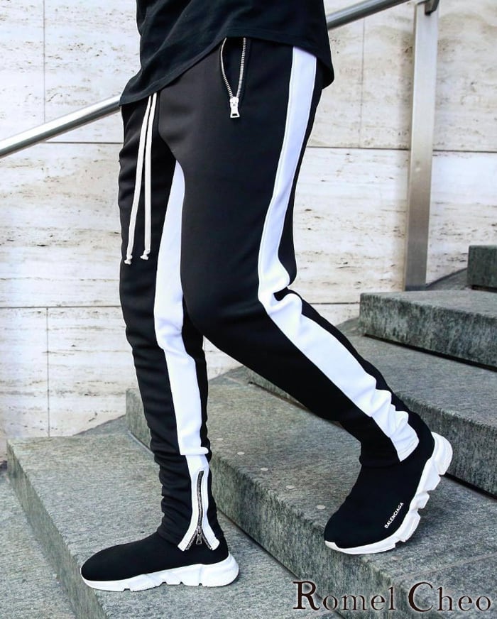 【お支払い確認後20日以内発送】RomelCheo スリム スウェットパンツ メンズ 裾ジップ ジョガーパンツ スポーティー スキニーパンツ スリムパンツ トラックパンツ ジップパンツ タイト メンズ モード系 ストリート 原宿系 ファッション ロメルチェオ