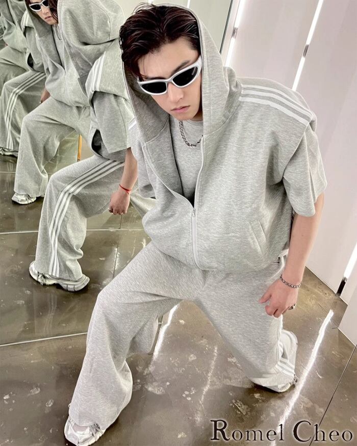 【お支払い確認後20日以内発送】RomelCheo 3本ラインスウェットパンツ トラックパンツ ワイドパンツ ワイドレッグパンツ イージーパンツ サイドラインパンツ オバーサイズ ゆったり スポーツMIX ワンマイルウェア メンズ モード系 ストリート 原宿系 サロン系 ファッション ロメルチェオ