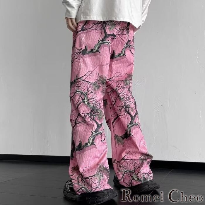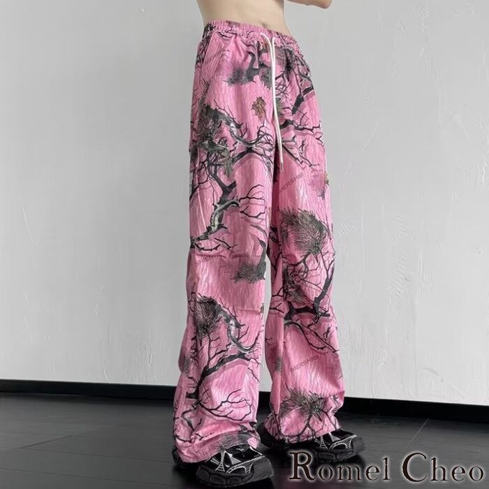 【お支払い確認後20日以内発送】RomelCheo ネイチャーレトロ迷彩プリントパンツ イージーパンツ ワイドパンツ 総柄パンツ 迷彩パンツ ワイドレッグパンツ カジュアルパンツ デザインパンツ オーバーサイズ ゆったり メンズ モード系 ストリート 原宿系 サロン系 ファッション ロメルチェオ