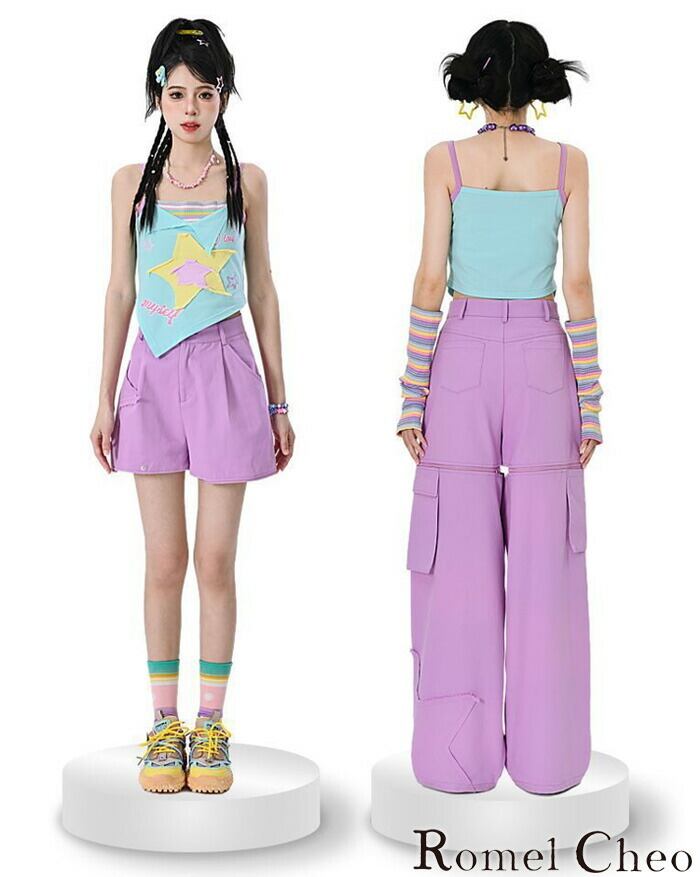 【お支払い確認後20日以内発送】RomelCheo 原宿系カラフルキャミとボーダーアームカバー キャミソール キャミ タンクトップ 切り替え 星柄 スター アームカバー カラフルトップス ロリータ レディース モード系 ストリート 原宿系 サロン系 ファッション ロメルチェオ
