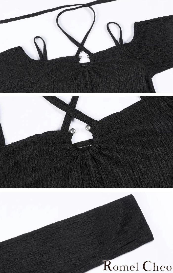 【お支払い確認後20日以内発送】RomelCheo ホルターネック オフショルニット 肩見せニット プルオーバー オフショルダー 肌見せトップス デザインニット トップス 指穴トップス サムホール 長袖 レディース モード系 ストリート 原宿系 サロン系 ファッション ロメルチェオ
